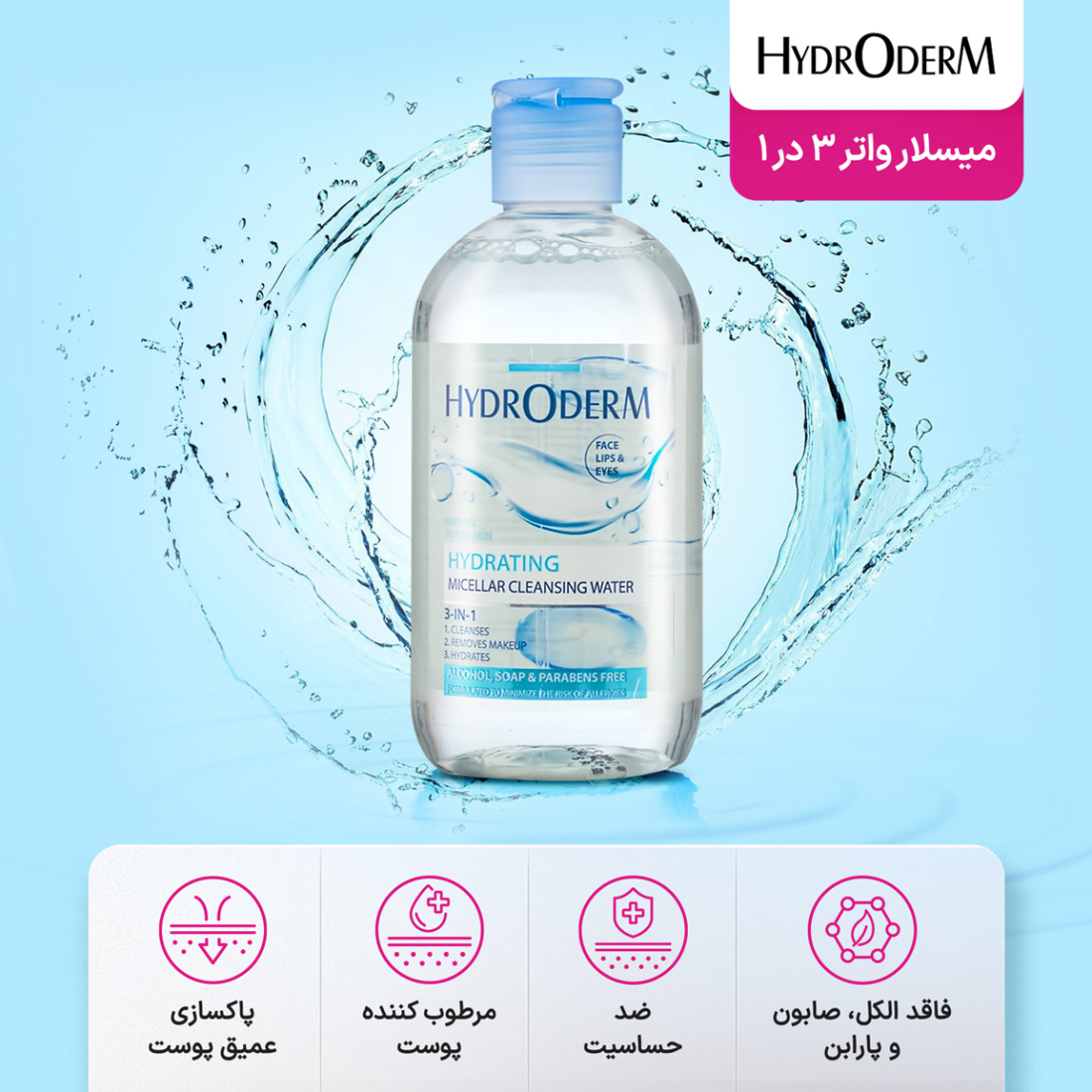 میسلار واتر 3 در 1 هیدرودرم مدل Hydrating مناسب پوست خشک و کم آبHydroderm Hydrating Micellar Water For Dry Skins