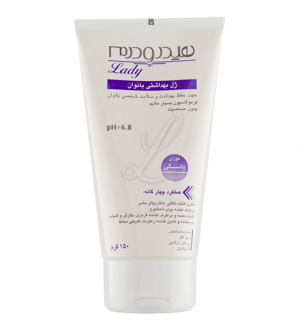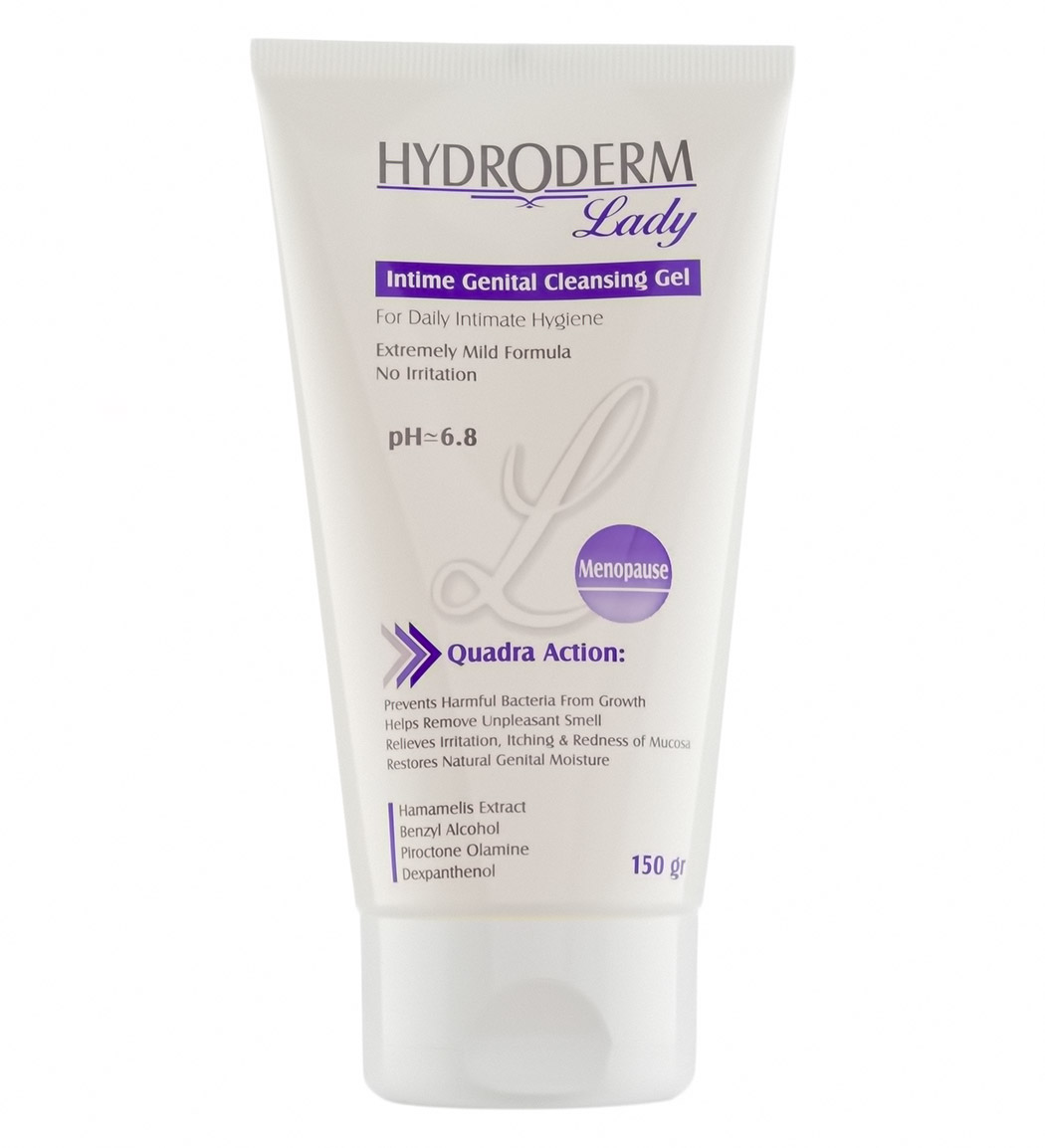 ژل بهداشتی بانوان یائسه هیدرودرم با فرمولاسیون ملایم، پاکسازی و حفظ تعادل PH ناحیه تناسلی را به خوبی انجام می‌دهد.