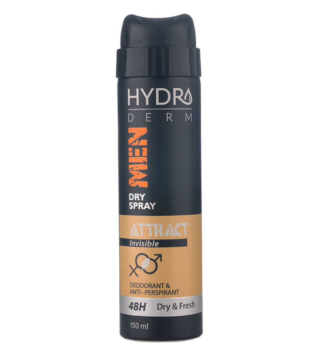 اسپری دئودورانت مردانه Men Atract Invisible هیدرودرم با ماندگاری ۴۸ ساعته و محافظت کامل