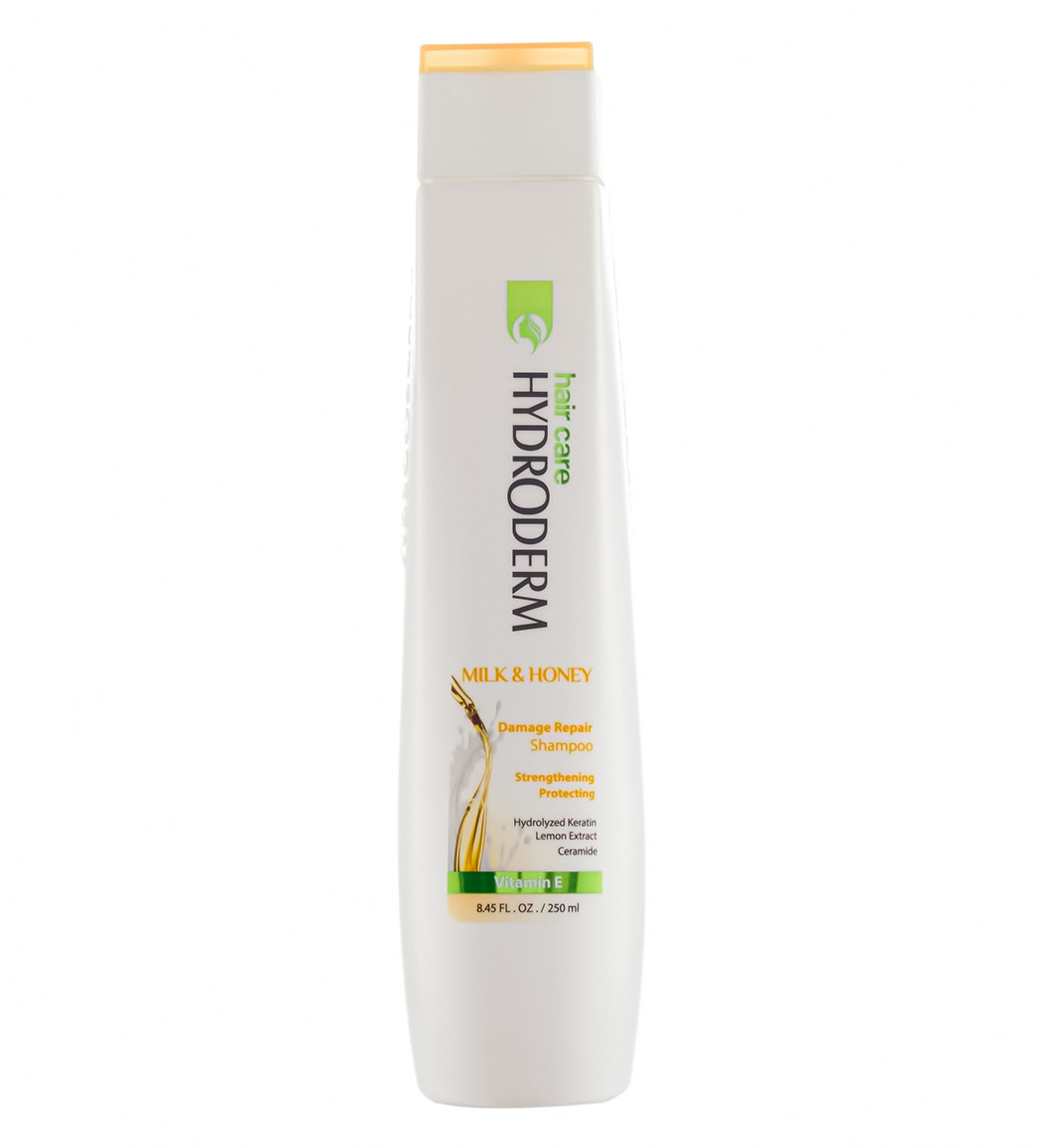 شامپو ترمیم کننده شیر و عسل هیدرودرم با فرمولاسیونی غنی از کراتین و سرامید، تقویت‌کننده و آبرسان موهای خشک و نازک است.