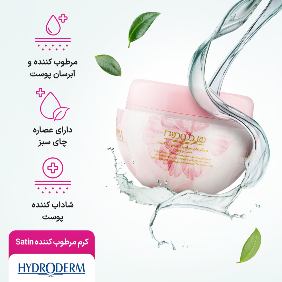 کرم مرطوب کننده کاسه‌ای دست و صورت مدل Satin هیدرودرم با فرمولاسیون ویژه برای انواع پوست