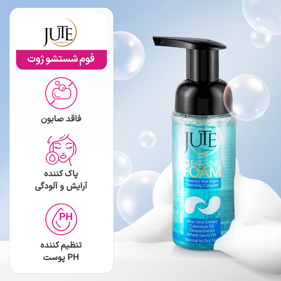 مشخصات کلیJute Cleansing Foam for Dry to Normal Skin