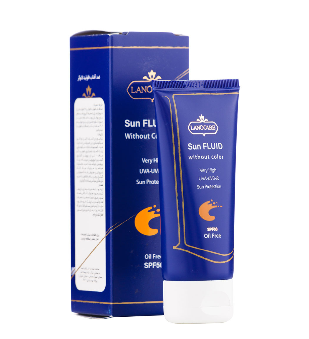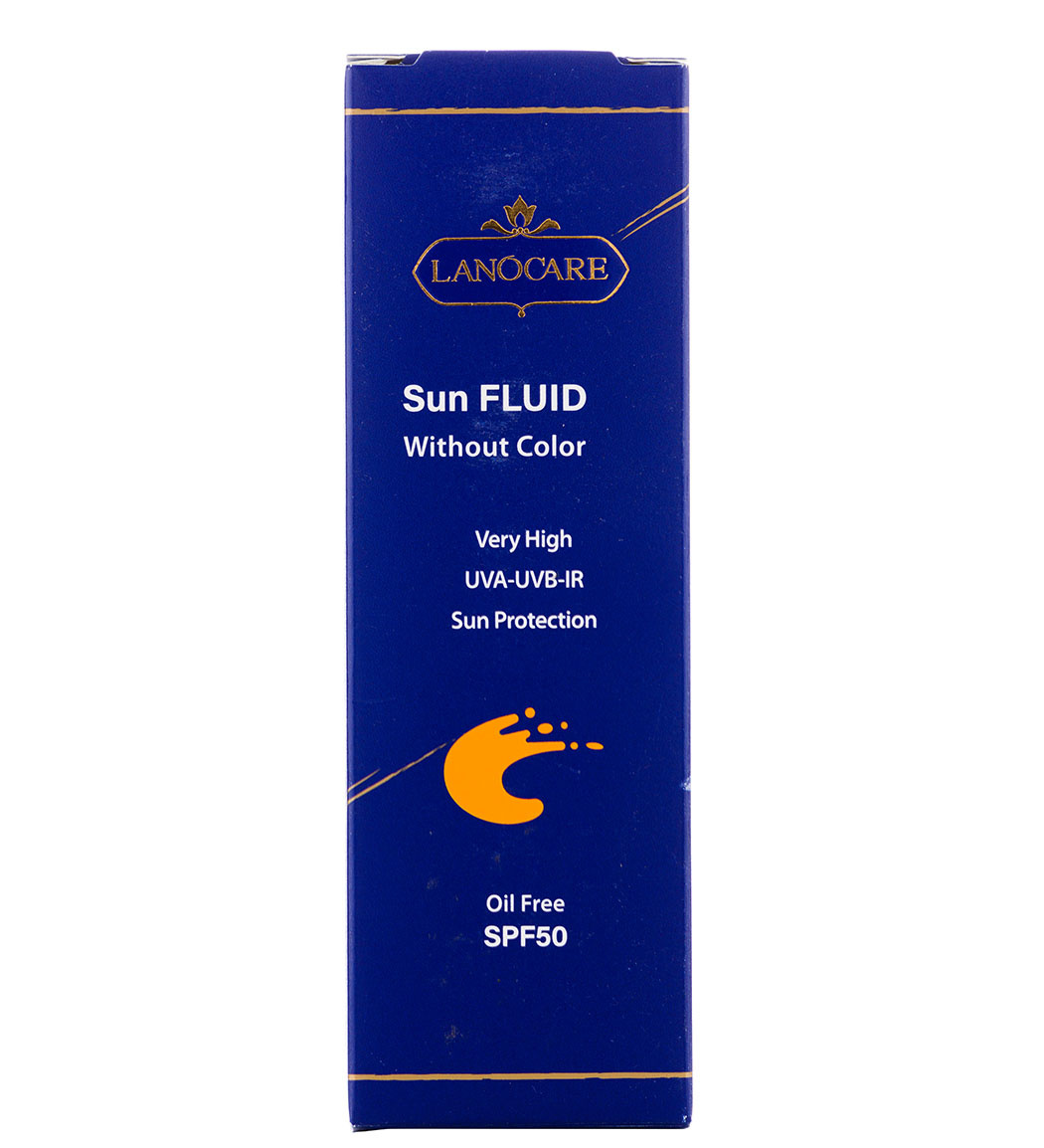 فلوئید ضد آفتاب بی رنگ لانوکر با SPF50 مناسب انواع پوست حجم 50 میلی لیترLanocare Sun Fluid 50 ml
