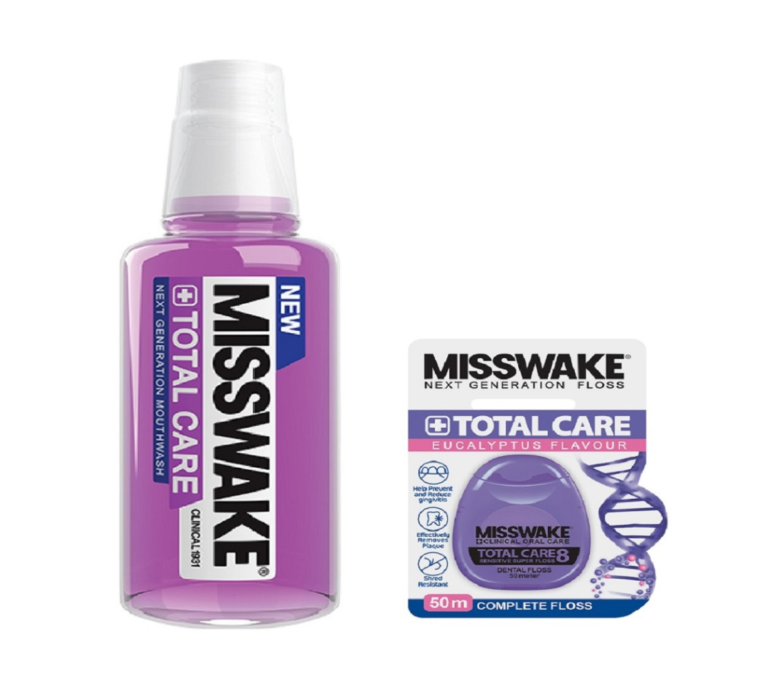 پک کامل دهان شویه و نخ دندان مدل Total Care میسویک برای مراقبت جامع از دهان و دندان