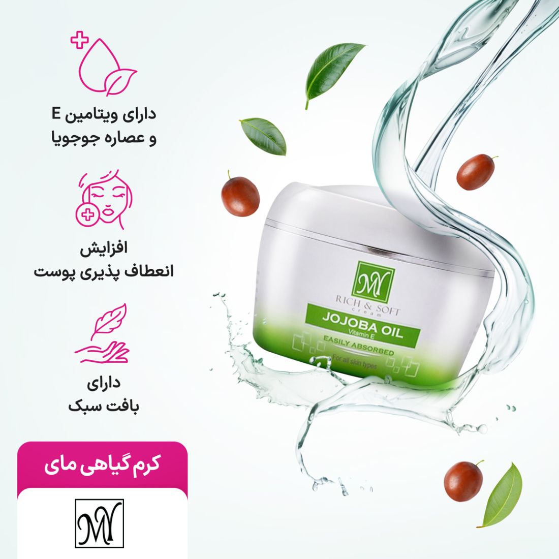 کرم گیاهی جوجوبا مای با فرمولاسیون سبک و موثر، پوست را عمیقاً مرطوب و نرم می‌کند.