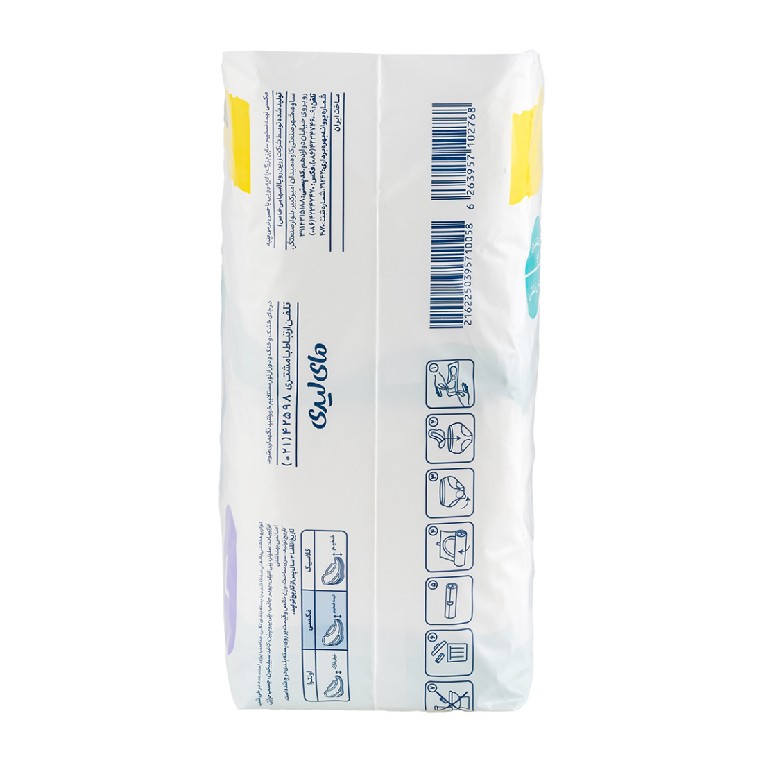 پد بالدار بزرگ با جذب متوسط و رویه مشبک نرم، مناسب برای پوست‌های حساس و استفاده روزانه.