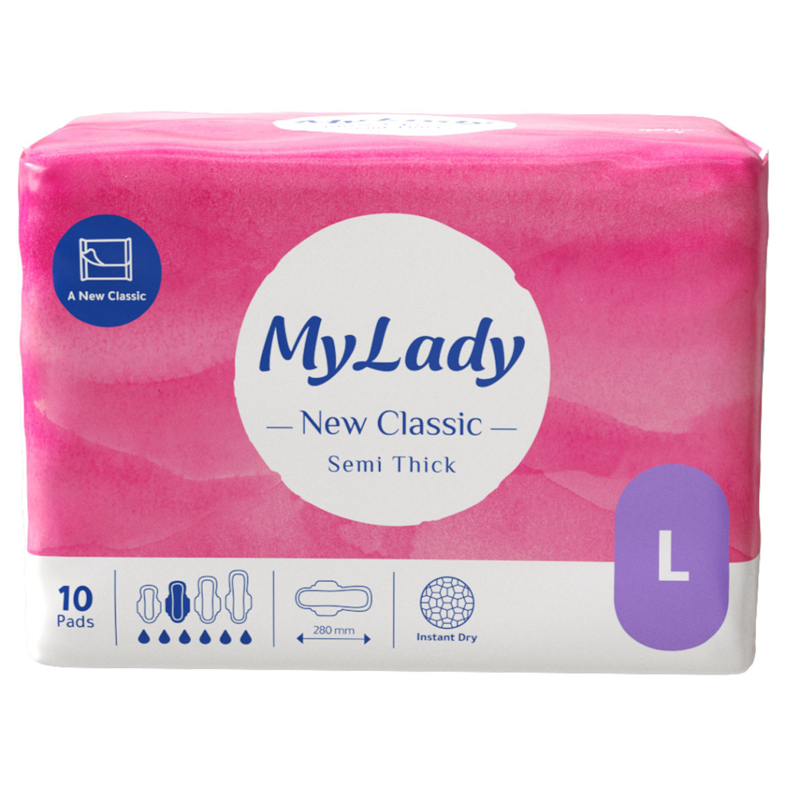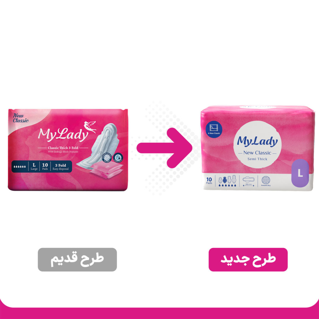 نوار بهداشتی نیو کلاسیک نیمه ضخیم سایز بزرگ با بسته بندی تکی 10عددی مای لیدیMy Lady Perforated Cotton Feel Sanitary Pad
