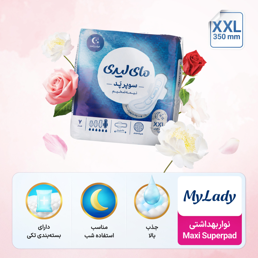 نوار بهداشتی مای لیدی مدل Maxi Superpad سایز خیلی خیلی بزرگ بسته 7 عددMy Lady Superpad Pack Of 7