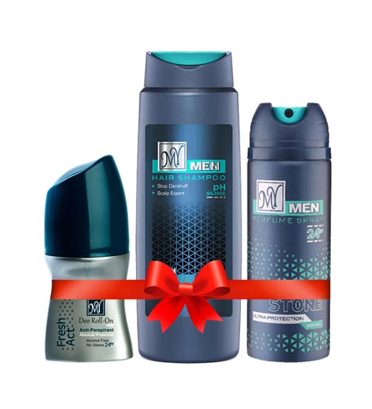 پک کامل مراقبت مردانه شامل دئودورانت رولی، شامپو ضدشوره و اسپری بدن با ماندگاری طولانی.