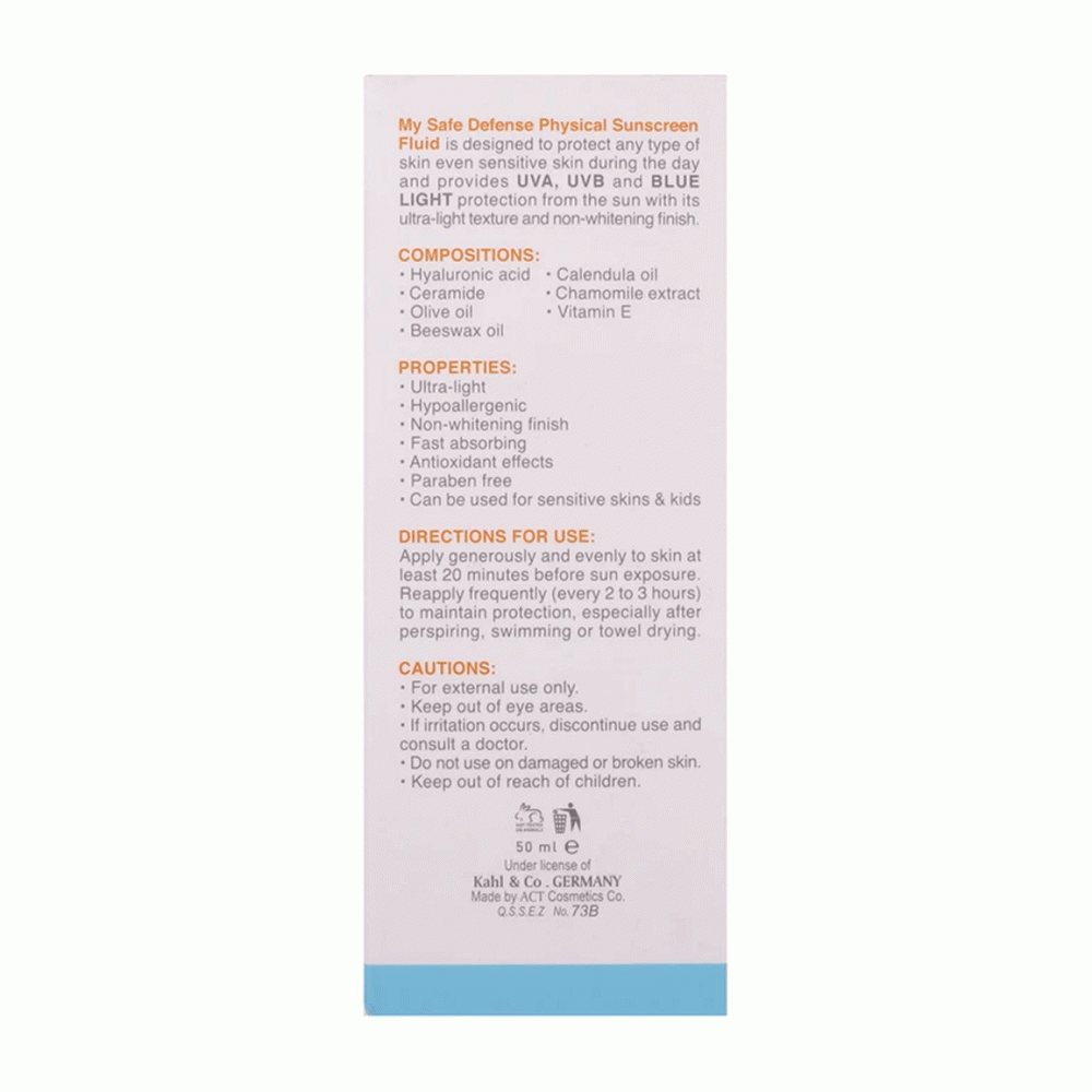 مشخصات کلیMy Sunscreen Cream SPF30 Physical Fluid 50ml