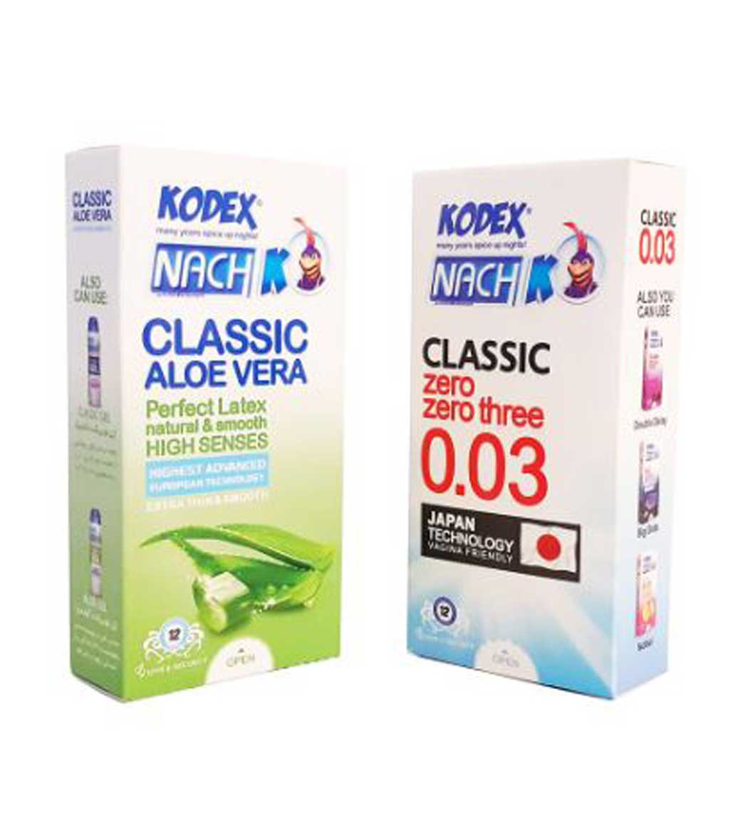 کاندوم مدل آلوئه ورا بسته 12 عددی به همراه کاندوم مدل 0.03 بسته 12 عددی ناچ کدکسNach Kodex Condom Pack