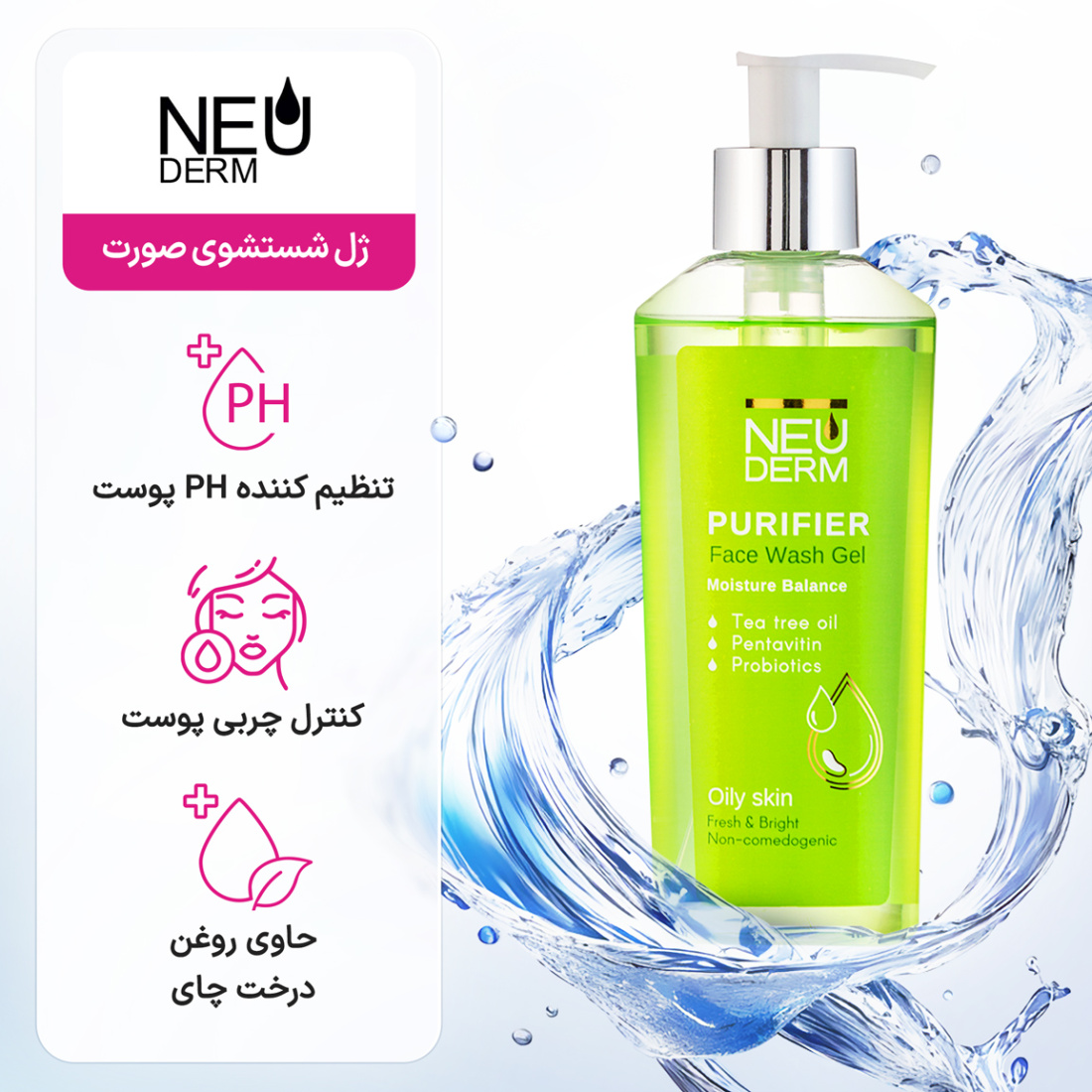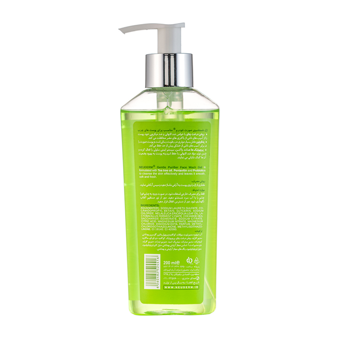 ژل شستشوی صورت نئودرم حاوی روغن درخت چای مناسب پوست چرب حجم 200 میلی لیترNeuderm Face Wash Gel 200ml
