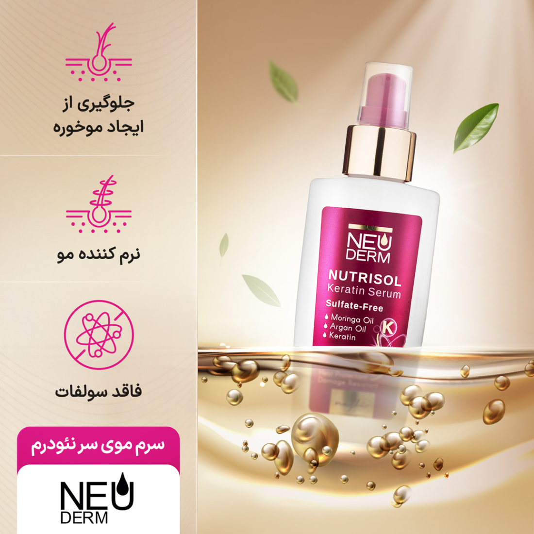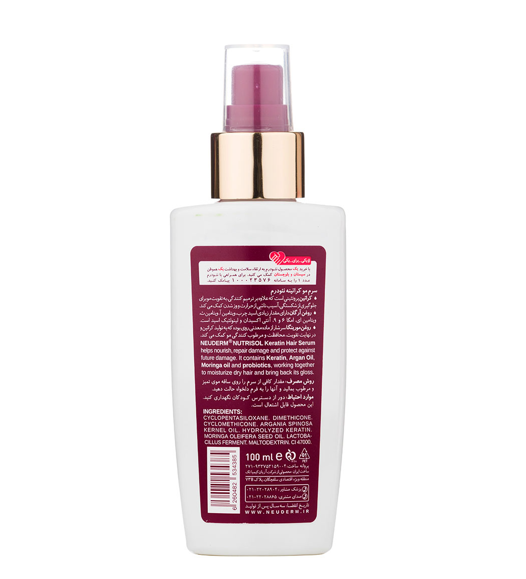 سرم مو کراتین نئودرم مدل Nutrisol فاقد سولفات حجم 100 میلی لیترNeuderm Hair Serum Keratin 100ml