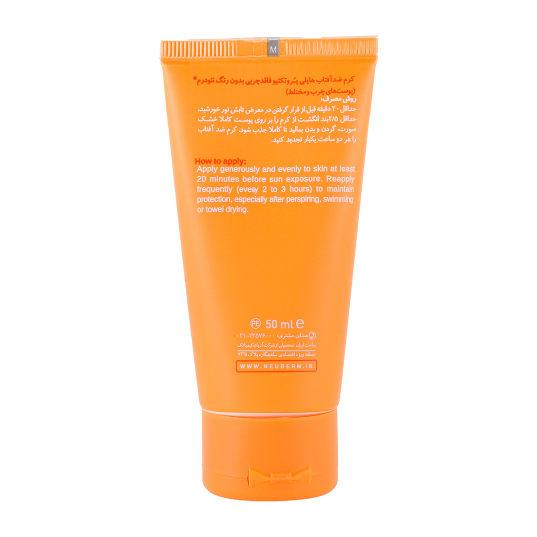 کرم ضد آفتاب بی رنگ نئودرم مدل SPF+50 مناسب پوست چرب حجم 50 میلی لیترNeuderm Oil Free Sunscreen Cream 50ml