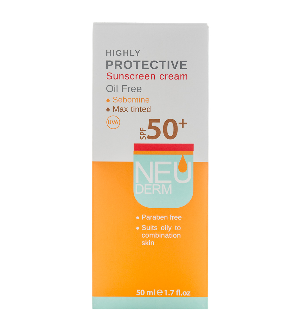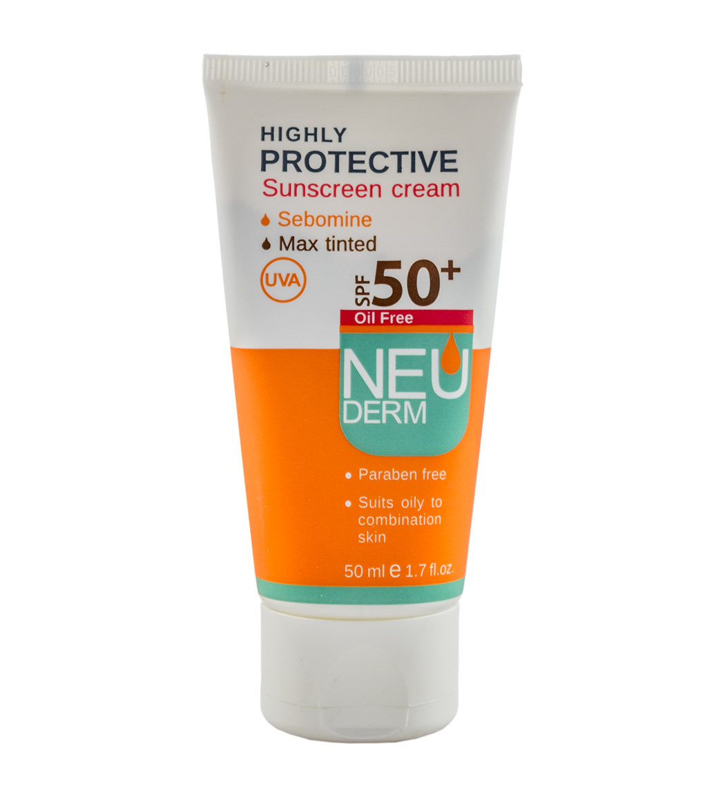 کرم ضد آفتاب رنگی نئودرم مدل Protective با SPF50 فاقد چربی مناسب پوست چرب حجم 50 میلی لیترNeuderm Oil Free Sunscreen Cream 50ml