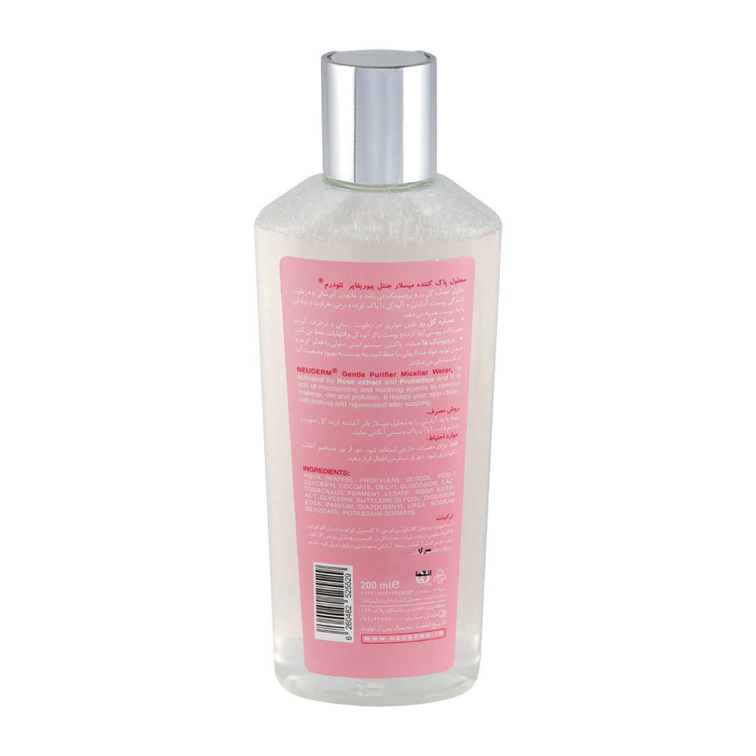 حجم ۲۰۰ میلی‌لیتری این میسلار واتر، استفاده طولانی‌مدت و مقرون به‌صرفه‌ای را برای شما فراهم می‌کند. مبدا و کشور سازنده این محصول ایران است و برند نئودرم با تکیه بر استانداردهای بالای تولید، کیفیت و ایمنی آن را تضمین می‌کند.