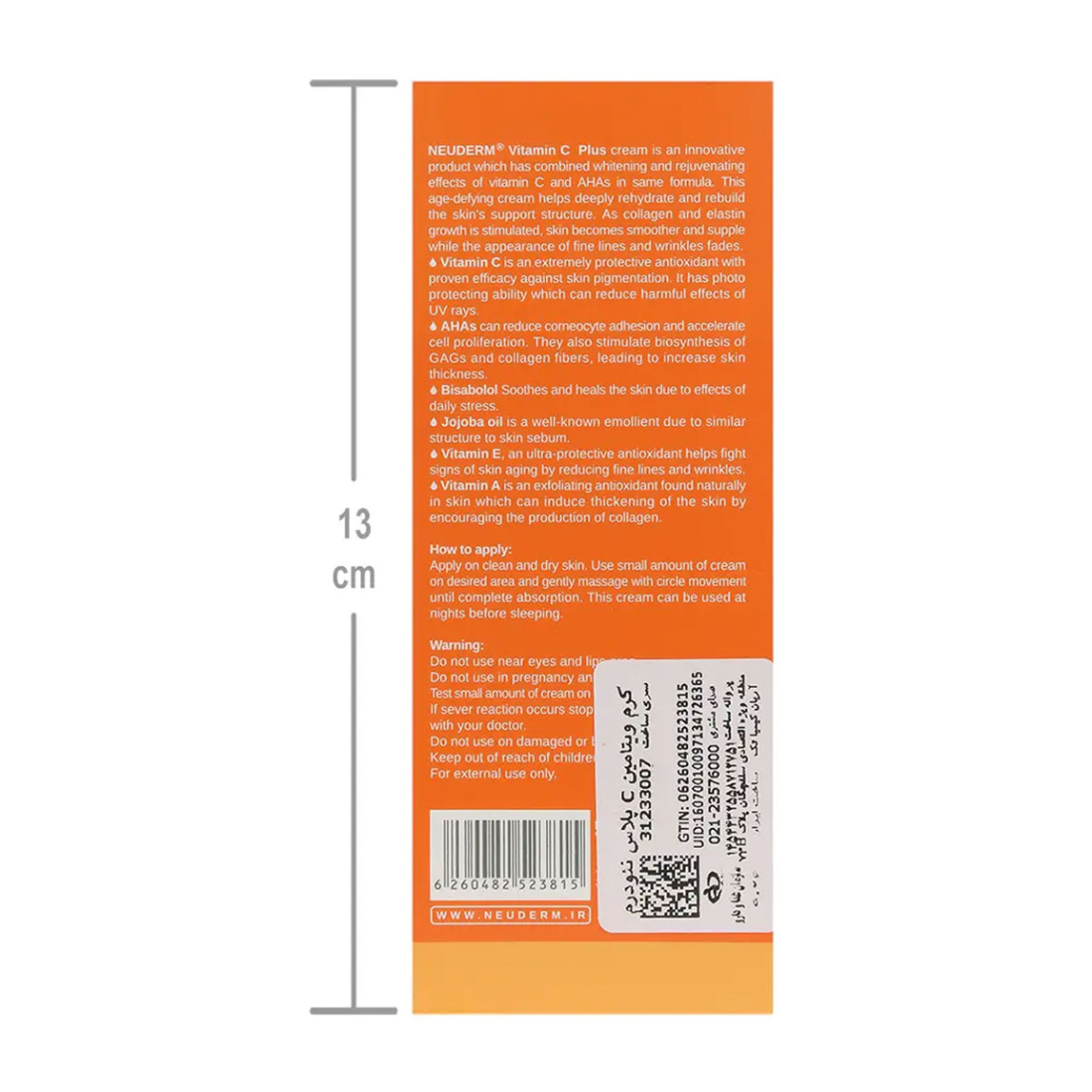 مشخصات اصلی و ویژگیهای برجسته کرم ویتامین سی پلاس نئودرم