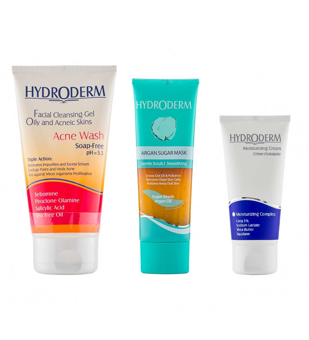پک مراقبت پوست چرب هیدرودرم مناسب برای پاکسازی و ترمیم پوستهای چرب و مستعد آکنه