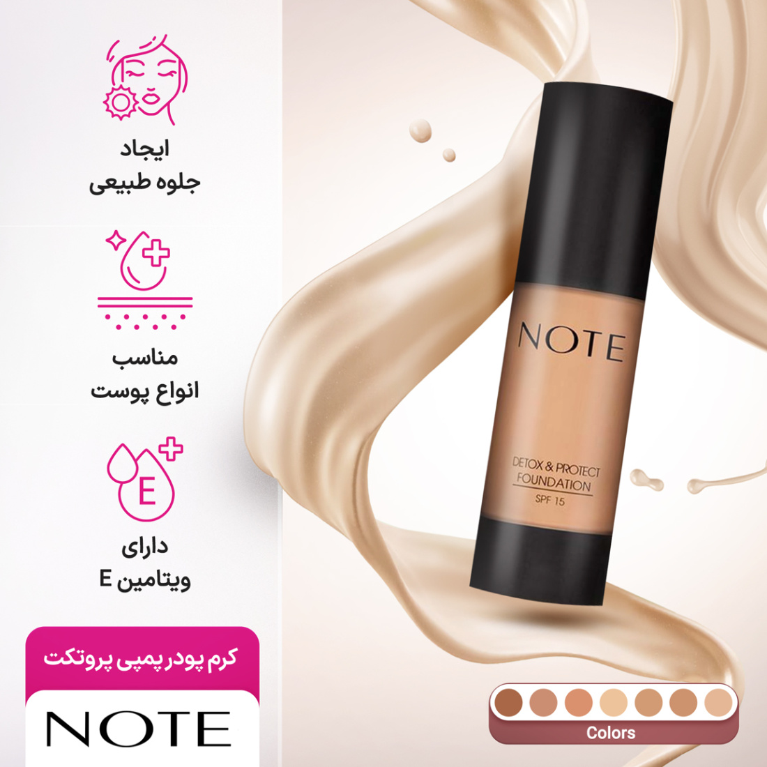 کرم پودر پمپی نوت مدل Detox And Protect با spf15حجم 35 میلی لیترNote Detox And Protect Foundation