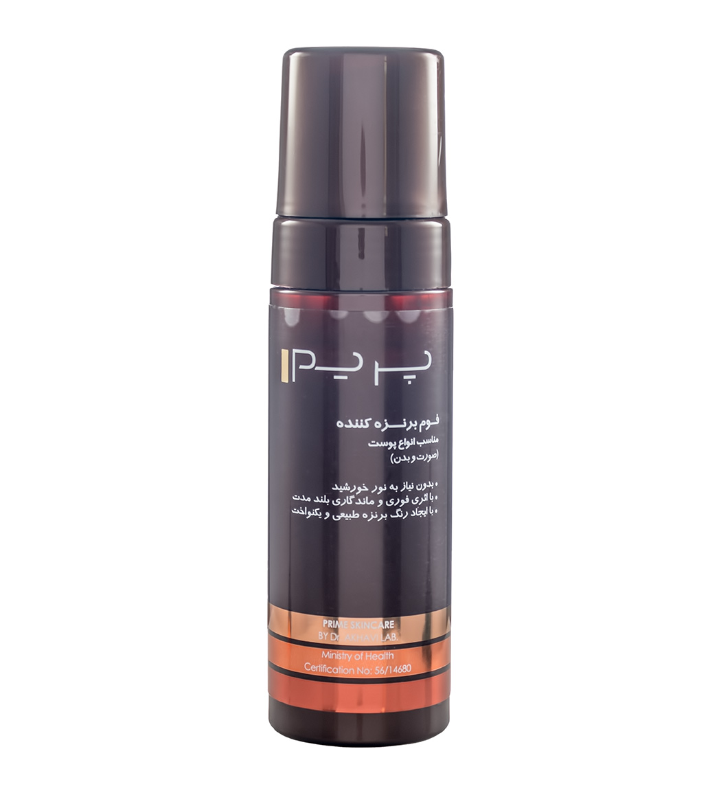 فوم برنزه کننده پوست بدن و صورت پرایم با ماندگاری بالا و رنگدهی یکنواخت