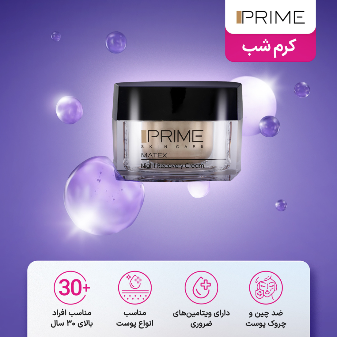 کرم شب ضدچروک پریم مدل Matex با فرمولاسیون مغذی و ترمیمکننده پوست