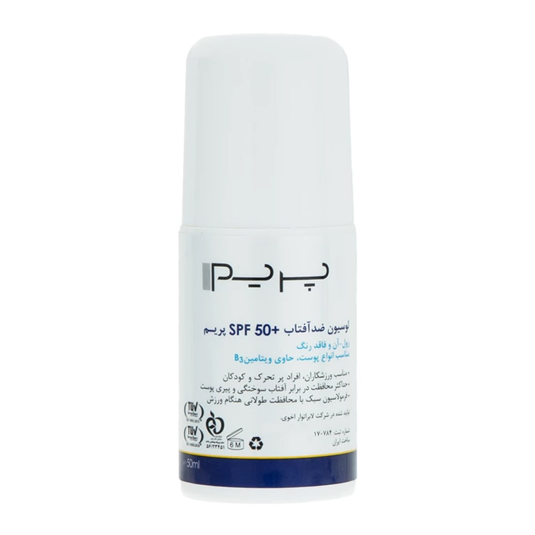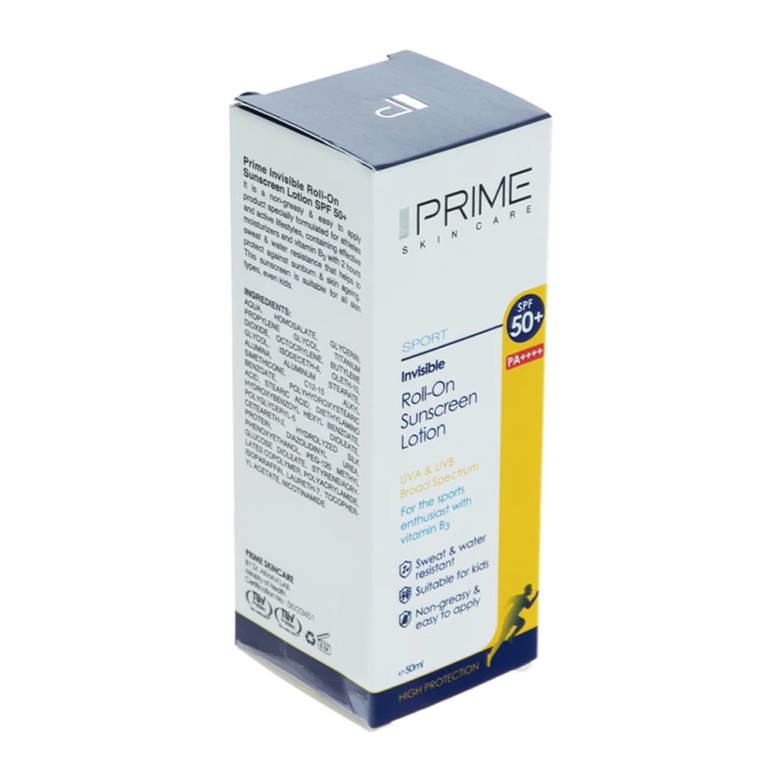 لوسیون ضد آفتاب بی رنگ پرایم با SPF50 مناسب انواع پوست حجم 50 میلی لیترPrime Roll On Sunscreen Lotion Spf50