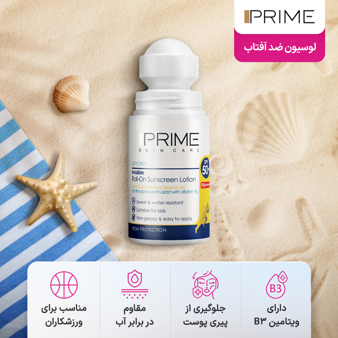 لوسیون ضدآفتاب رولی پرایم مدل Sport Invisible Roll-On با محافظت کامل و فرمولاسیون پیشرفته