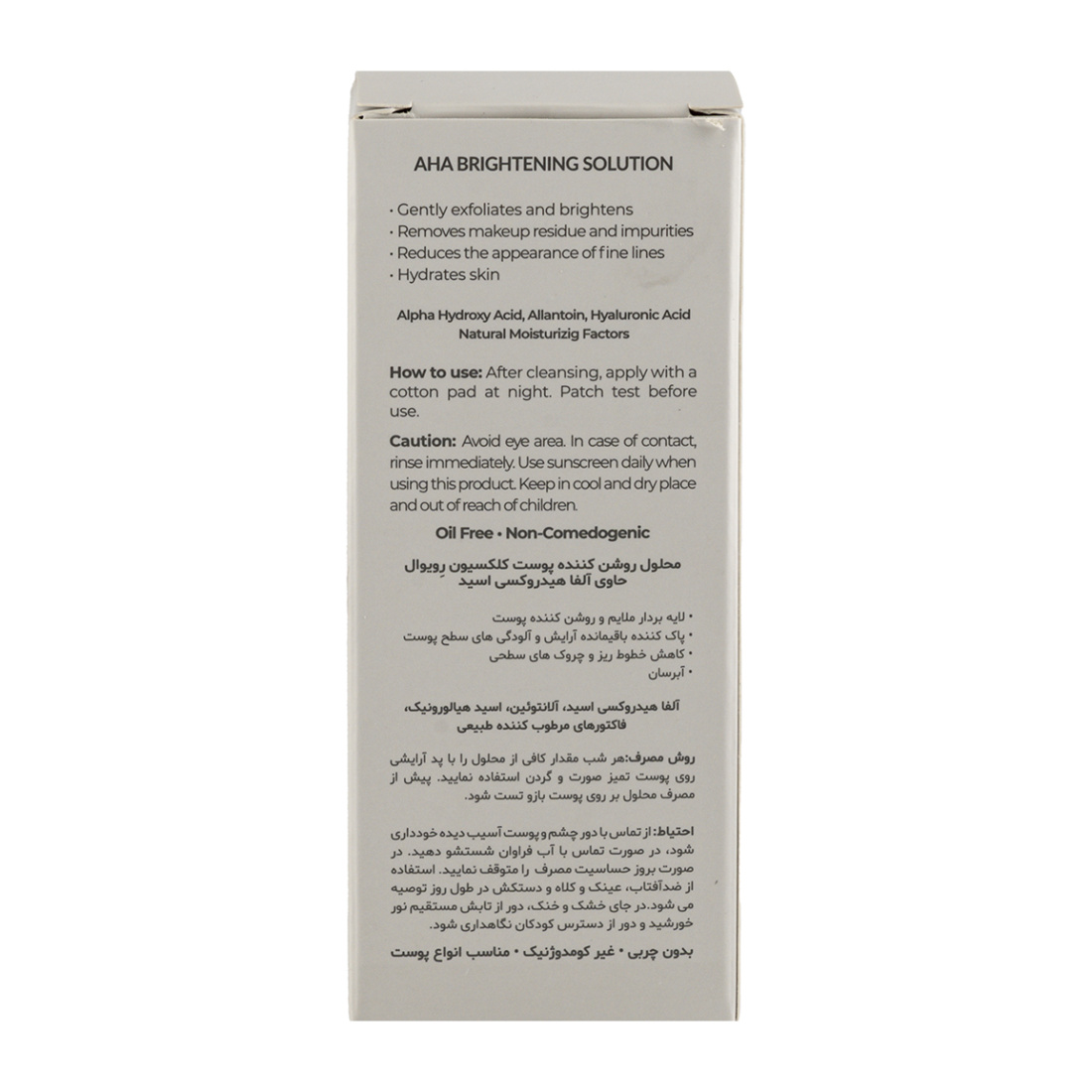 محلول پاک کننده آلفا هیدروکسی اسید رویوال، لایه‌بردار ملایم و آبرسان مناسب برای انواع پوست است.