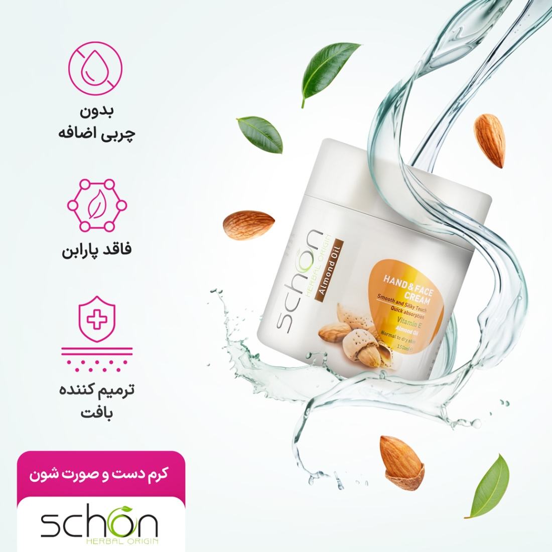 کرم دست و صورت حاوی روغن بادام 150 میلیلیتر شون با خواص آبرسانی و تغذیهکننده پوست
