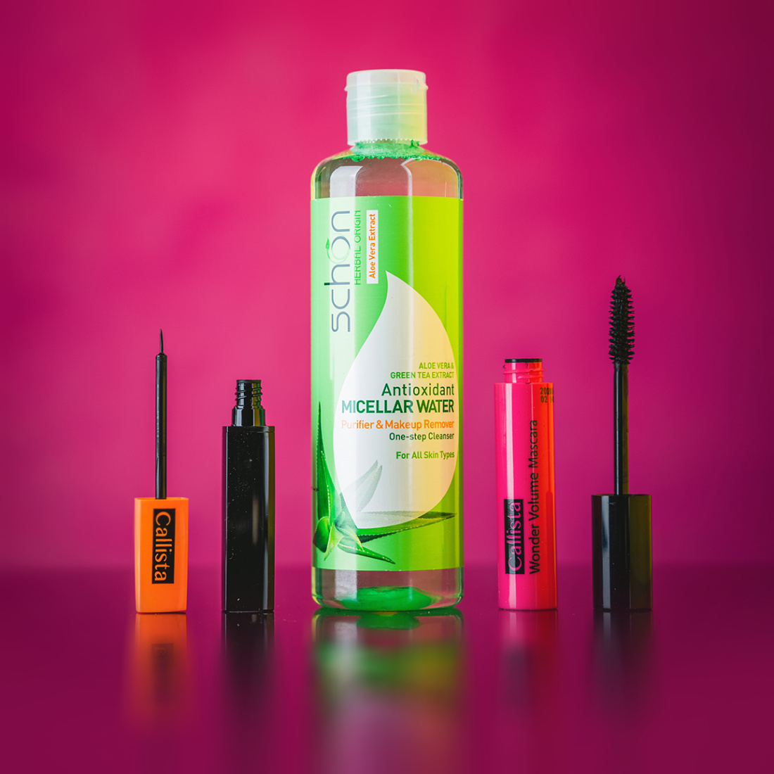 این پک ویژه، مجموعه‌ای بی‌نظیر از محصولات آرایشی و مراقبتی را در اختیار شما قرار می‌دهد که ترکیبی از کیفیت، ماندگاری و مراقبت از پوست و چشم‌ها را تضمین می‌کند. در این مجموعه، ریمل حجم دهنده کالیستا Wonder Volume، خط چشم کالیستا مدل لاینر اند شیپر و محلول پاک کننده میسلار شون مدل آنتی اکسیدان به صورت حرفه‌ای گردآوری شده‌اند تا تجربه‌ای متفاوت و کامل از آرایش و پاکسازی را برای شما فراهم کنند.