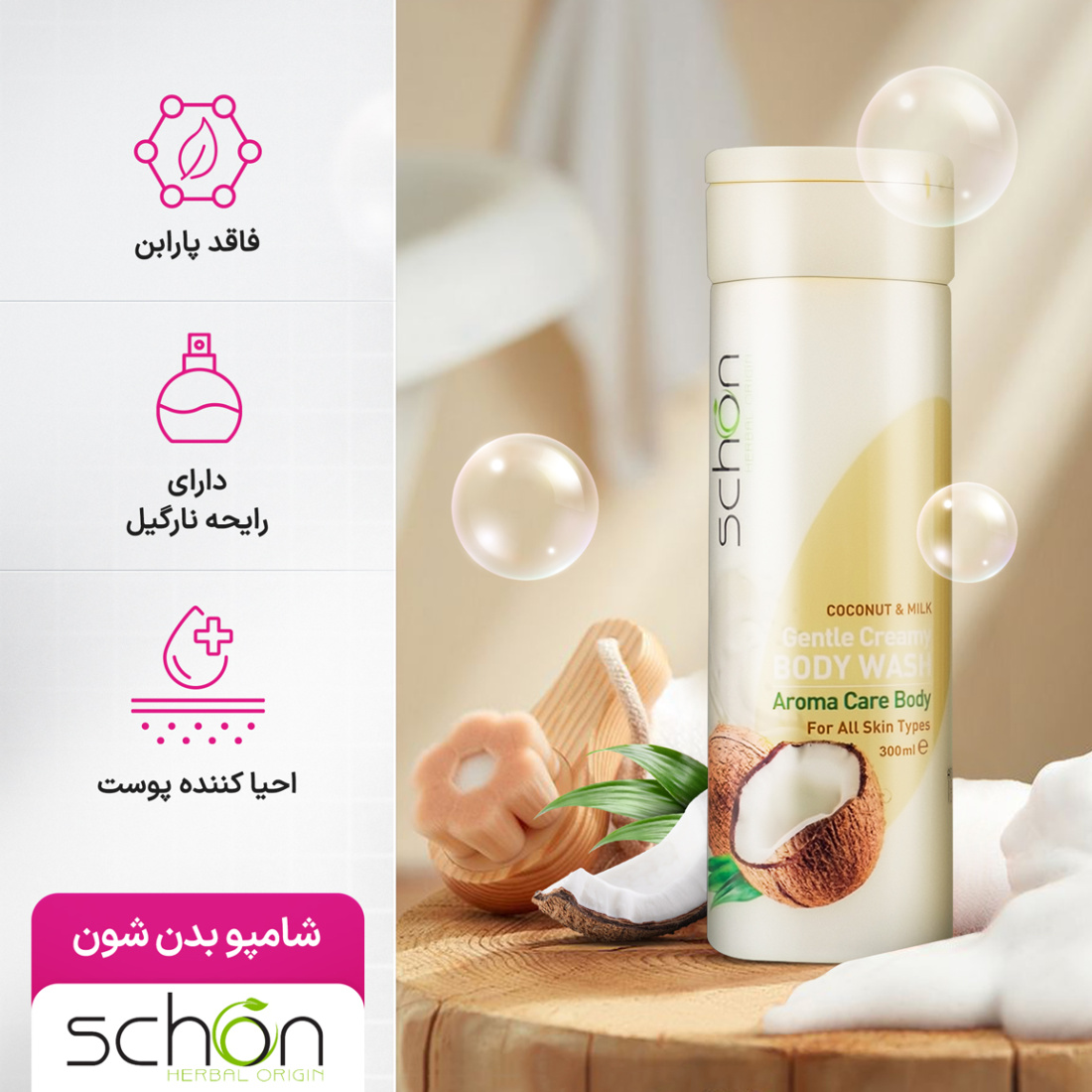 شامپو بدن کرمی نارگیل 300میل شونSchon Creamy Body Wash 300ml
