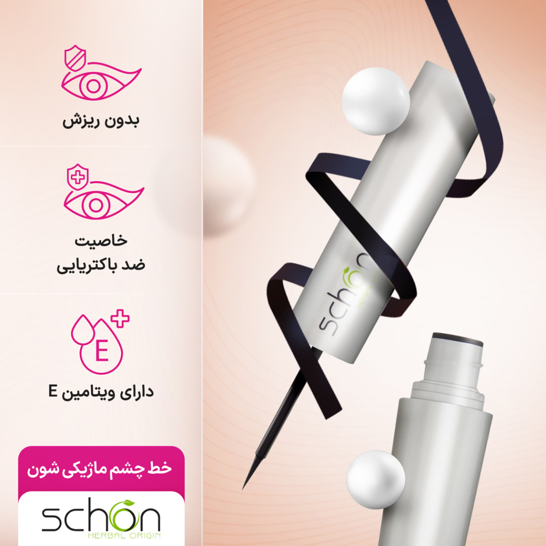 خط چشم ماژیکی بلک فبیولس شون دارای رنگدانه‌های مشکی فوق‌العاده غلیظ و یکدست است که خطوطی بسیار دقیق و خاص ایجاد می‌کند. این محصول با فرمول ضدریزش خود از ایجاد لکه و سیاهی در اطراف چشم جلوگیری می‌کند و ماندگاری بالایی دارد که تا ساعات طولانی بدون تغییر باقی می‌ماند. استفاده از ترکیبات گیاهی در این خط چشم باعث شده حساسیت‌های پوستی به حداقل برسد و محصولی کاملاً بی‌ضرر برای پوست‌های حساس باشد.