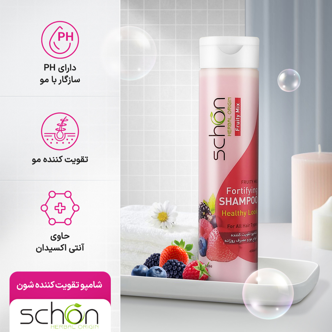 ویژگیهای کلیدی شامپو تقویت کننده فروتی میکس شون