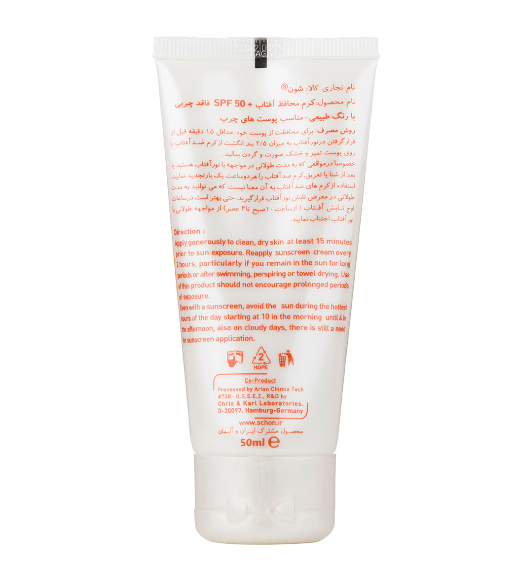 مشخصات کلیSchon Natural Tinted Oil Free Sunscreen SPF50