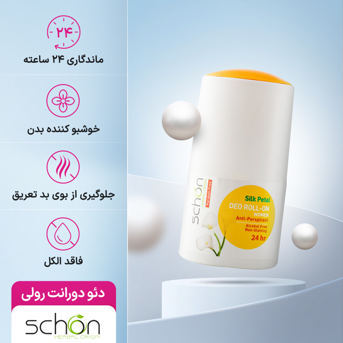 دئودورانت رولی زنانه شون مدل Silk Petal حجم 60 میلی لیترSchon Silk Deo Roll On