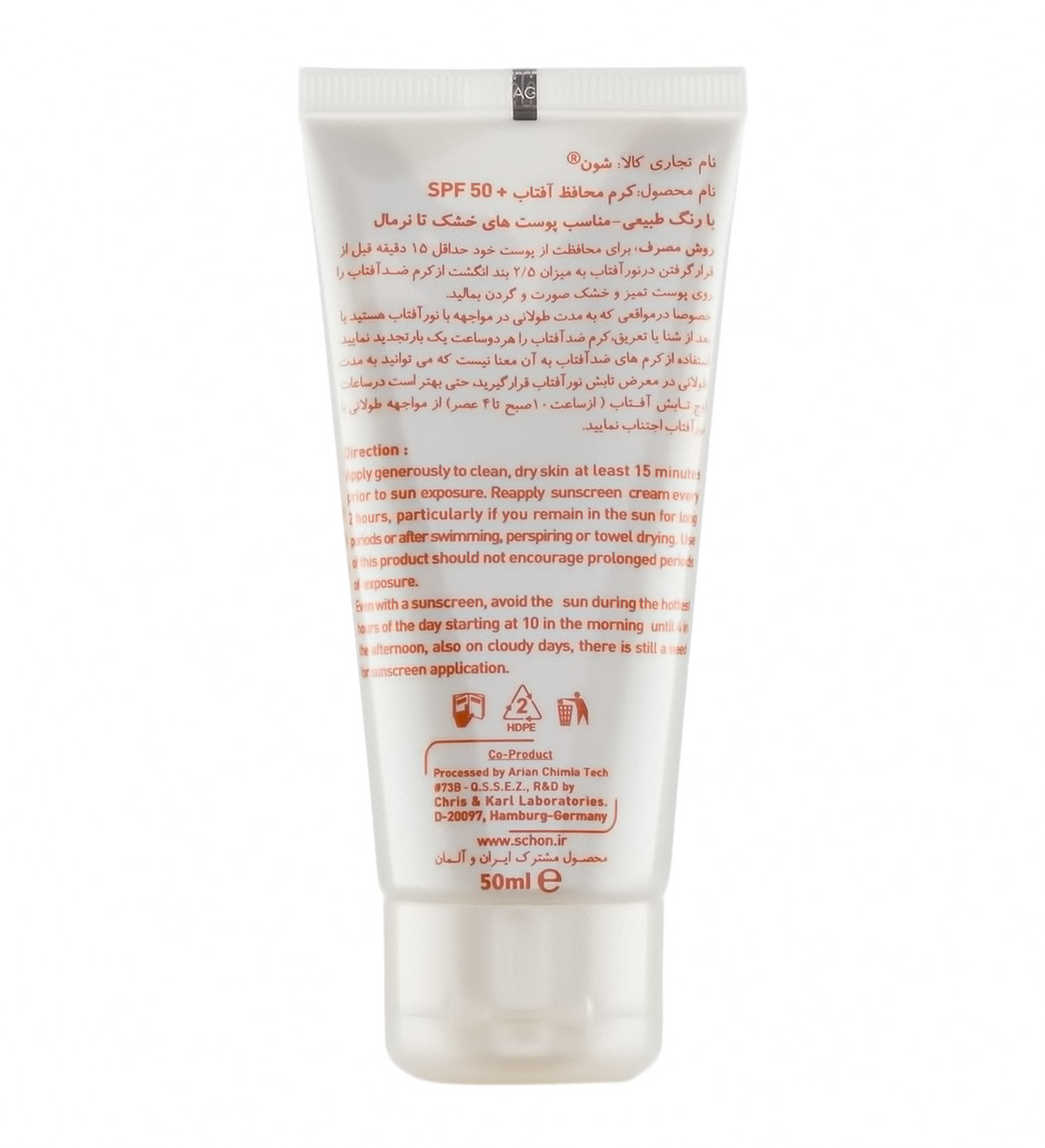 کرم ضد آفتاب رنگی شون با SPF50 مناسب پوست خشک و نرمال حجم 50 میلی لیترSchon Sunscreen