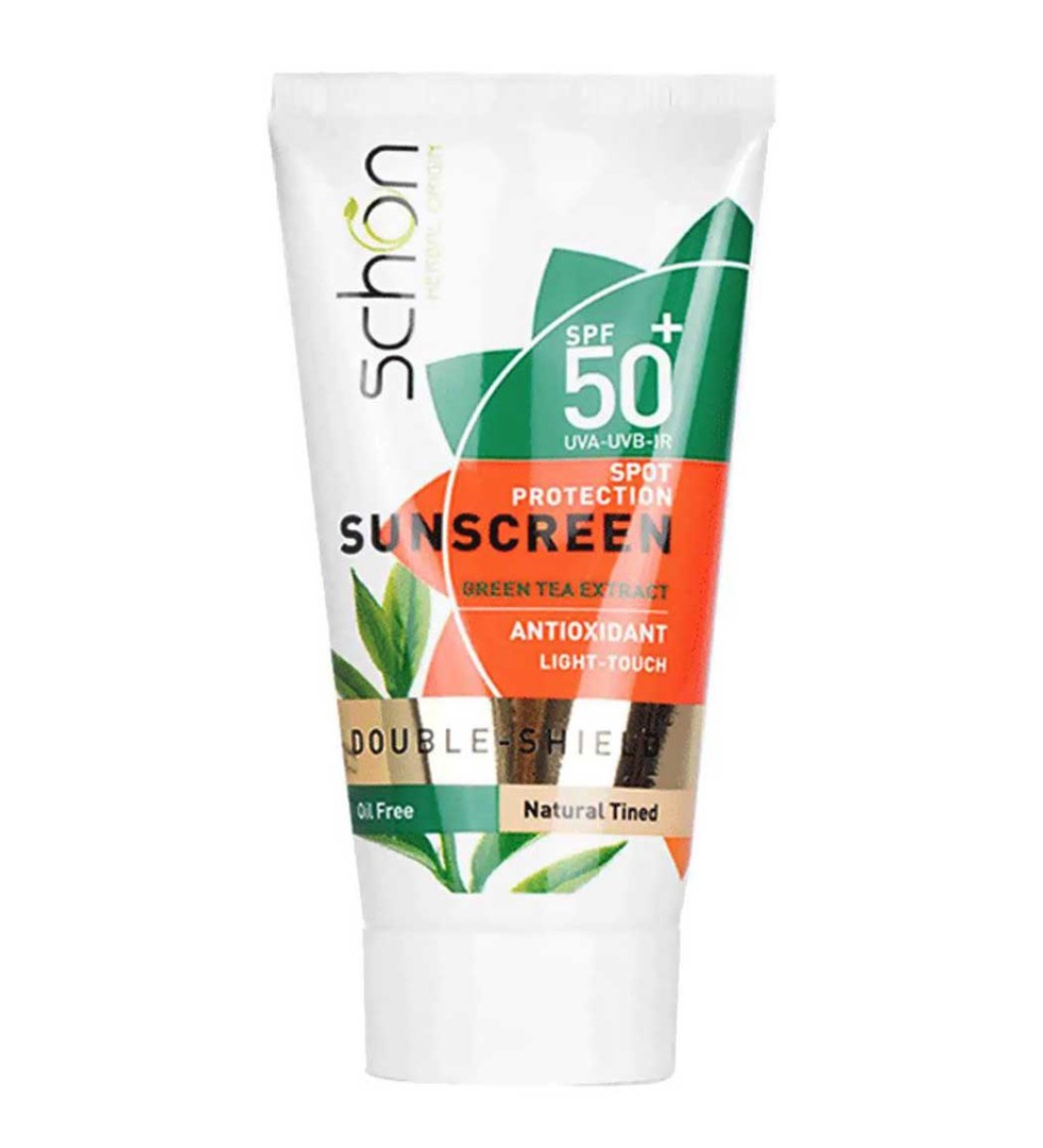 کرم ضد آفتاب رنگی طبیعی شون مدل Double Shield با SPF50 مناسب پوست چرب حجم 50 میلی لیترSchon Sunscreen Cream SPF50+ Oil Free Tinted 50ml