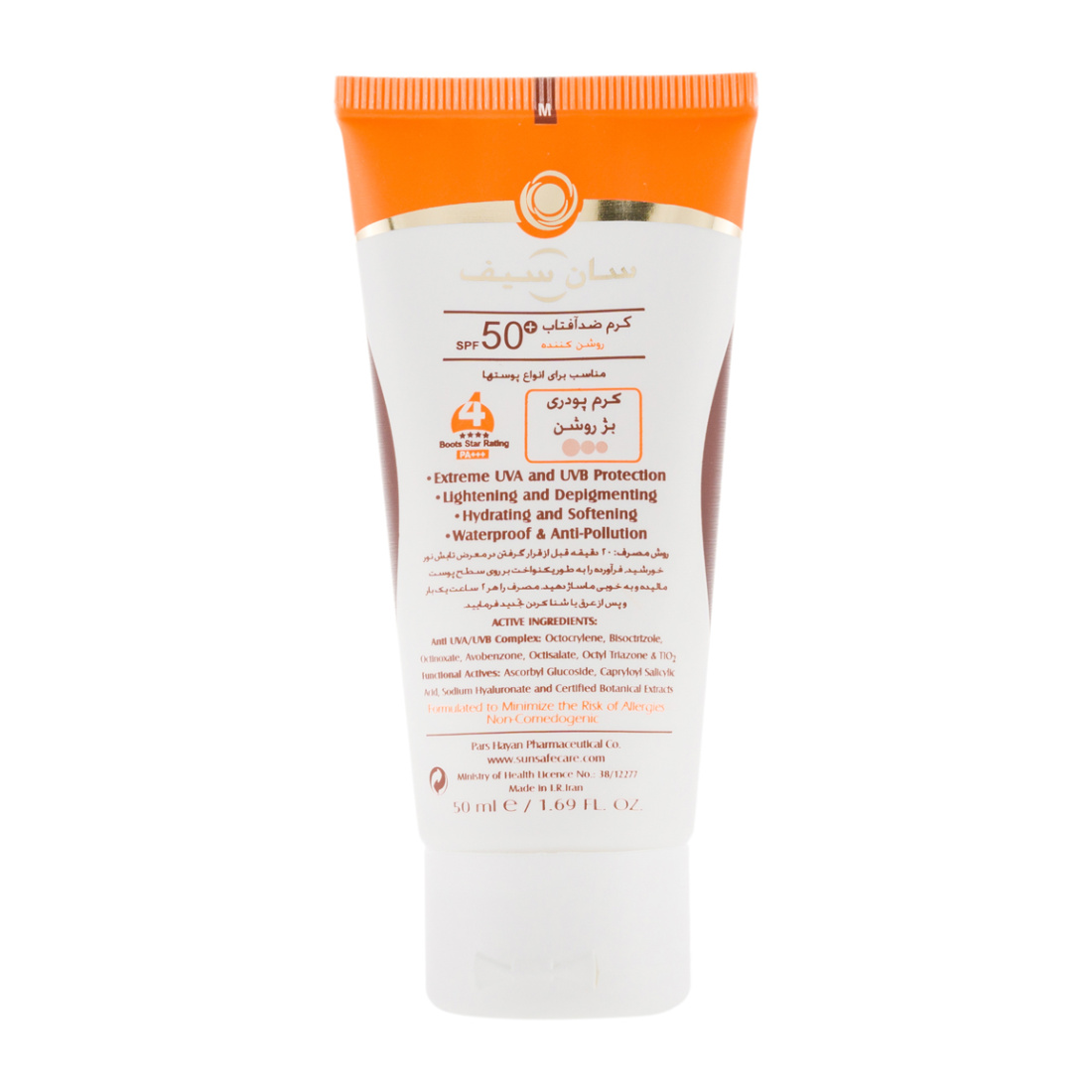 مشخصات فنی و ویژگی‌های کلیدی کرم ضد آفتاب رنگی و روشن کننده سان سیف SPF50
