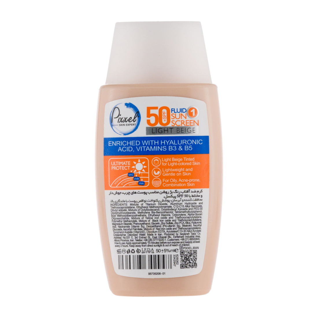 ضد آفتاب رنگی پیکسل با Spf50 مناسب پوست چرب و جوش دار حجم 50 میلی لیترPixxle Sunscreen Cream For Acne Prone And Oily Skin 50ml