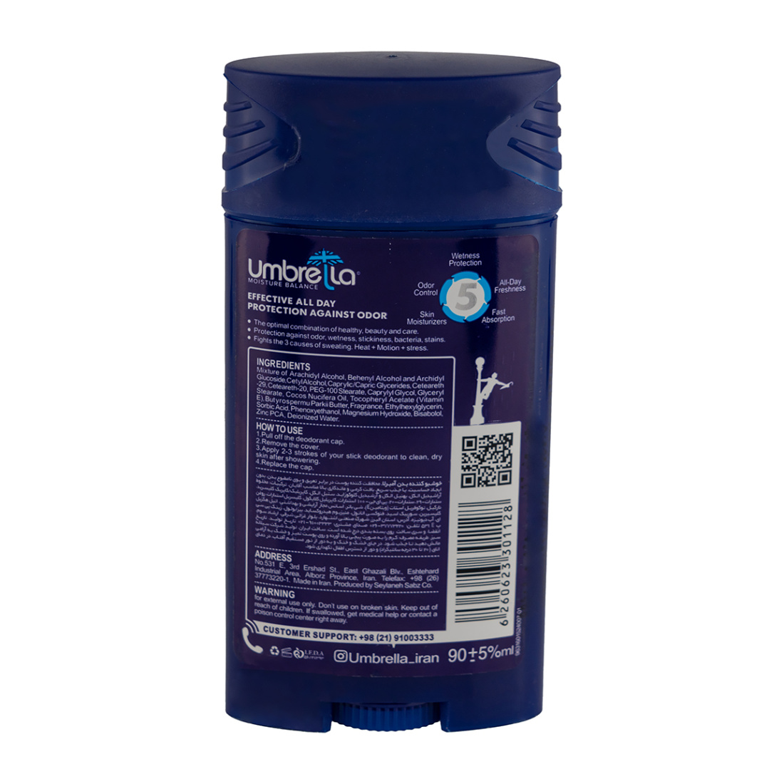 انتخاب این محصول به دلیل کیفیت ساخت ایرانی و ترکیبات ویژه آن، تضمینی برای رضایت شماست. ماندگاری ۴۸ ساعته این عطر باعث می‌شود که شما در هر شرایطی از رایحه‌ای مطبوع و دلپذیر بهره‌مند باشید. علاوه بر این، قابلیت جذب سریع و جلوگیری از تعریق، استیک آمبرلا را به گزینه‌ای ایده‌آل برای استفاده روزانه و حتی در شرایط پرتحرک تبدیل کرده است.