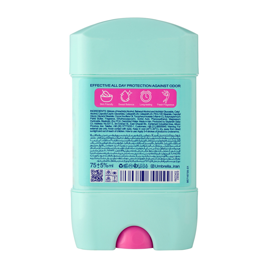 رایحه مطبوع و ماندگار ژل دئودورانت زنانه آمبرلا با حجم 75 میلی‌لیتر