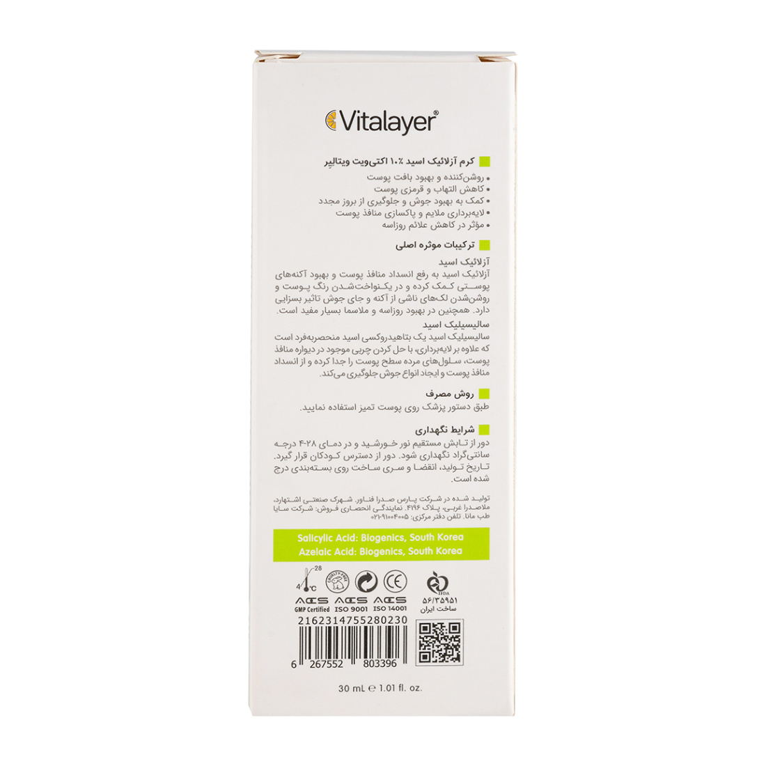 مشخصات کلیVitalayer Activit Azalaic Acid Cream 30 ml