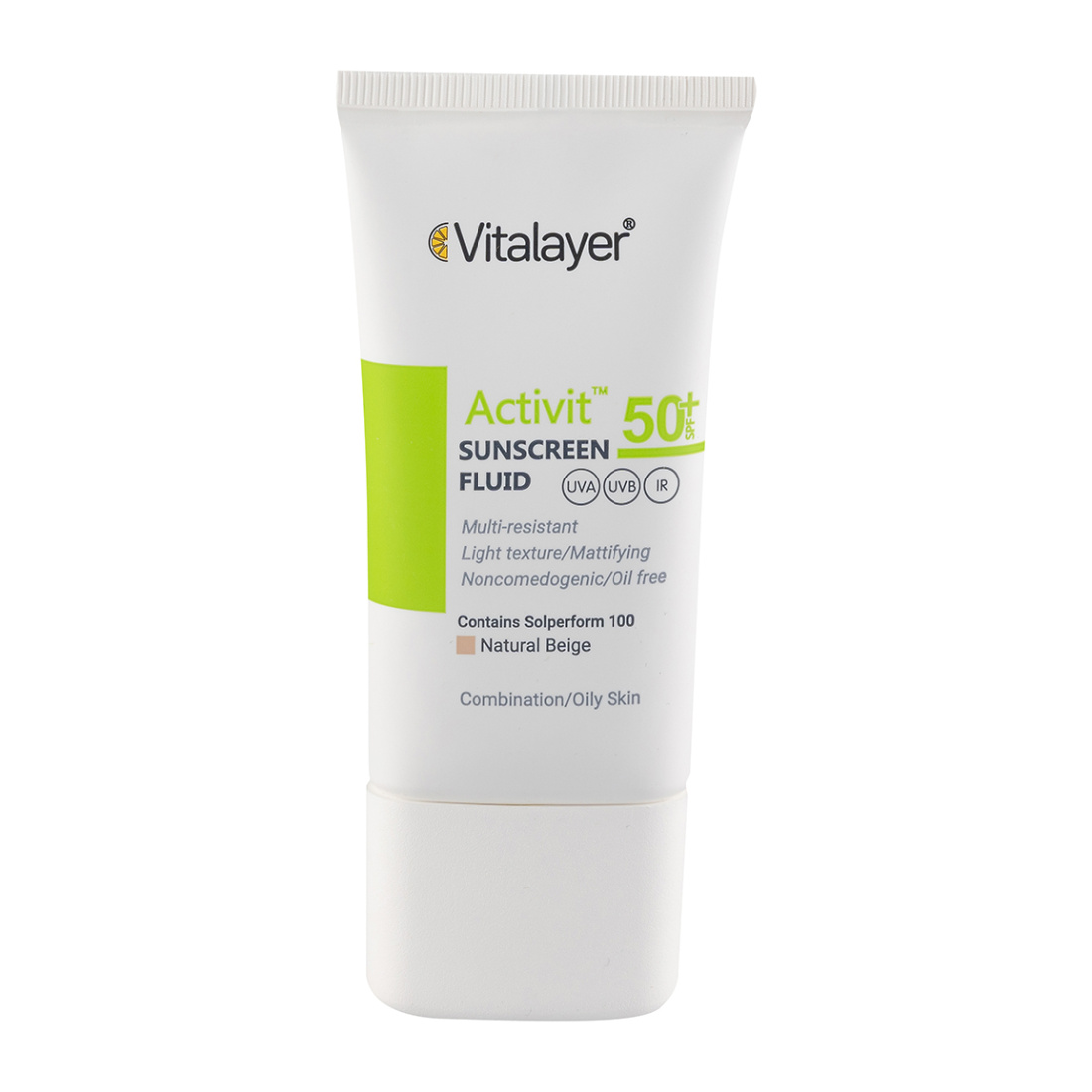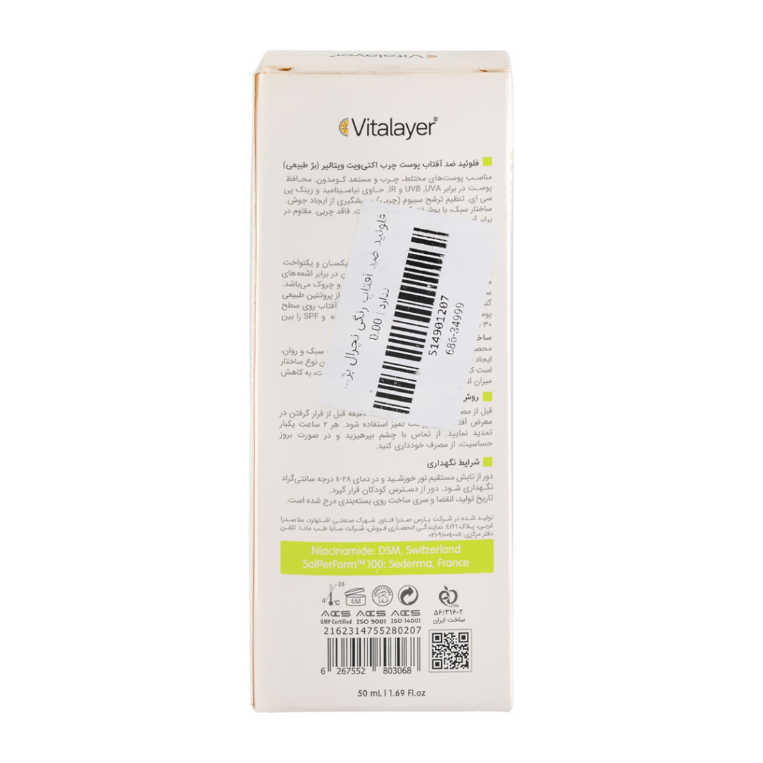 فلوئید ضد آفتاب رنگی ویتالیر مدل اکتیویت نچرال بژ حجم 50 میلی لیترVitalayer Activit Sunscreen Fluid Colored 50 ml