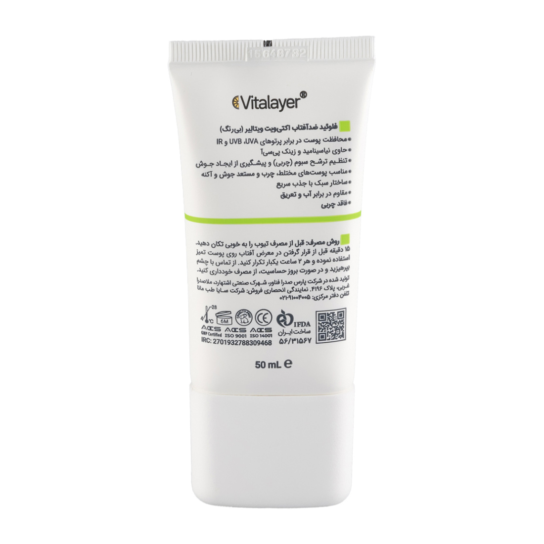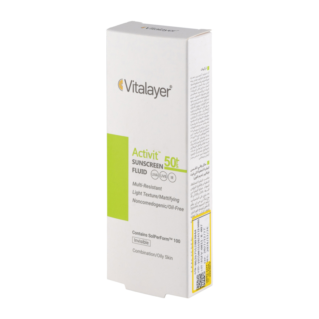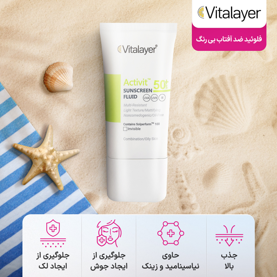 فلوئید ضد آفتاب بیرنگ اکتیویت ویتالیر مخصوص پوست چرب و مستعد جوش با SPF 50