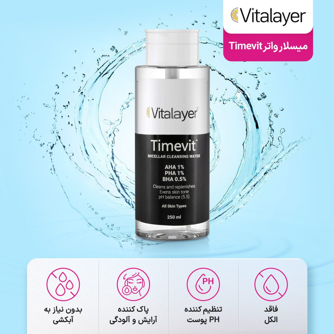 محصول میسلار واتر ویتالیر با فرمولاسیونی پیشرفته و کاملاً تخصصی، مناسب برای تمامی انواع پوست طراحی شده است تا تجربهای بینظیر در پاکسازی و مراقبت از پوست شما فراهم آورد. این محصول با ترکیبی منحصر به فرد از اسیدهای لایهبردار ملایم مانند AHA با غلظت 1%، PHA با 1% و BHA با 0.5%، بهطور موثر آلودگیها، چربی اضافی و سلولهای مرده پوست را از بین میبرد و به بازسازی و شفافیت طبیعی پوست کمک میکند. این ترکیبات باعث بهبود بافت پوست، کاهش لکهای تیره و یکنواخت شدن رنگ پوست میشوند بدون آنکه باعث تحریک یا خشکی بیش از حد شوند.
