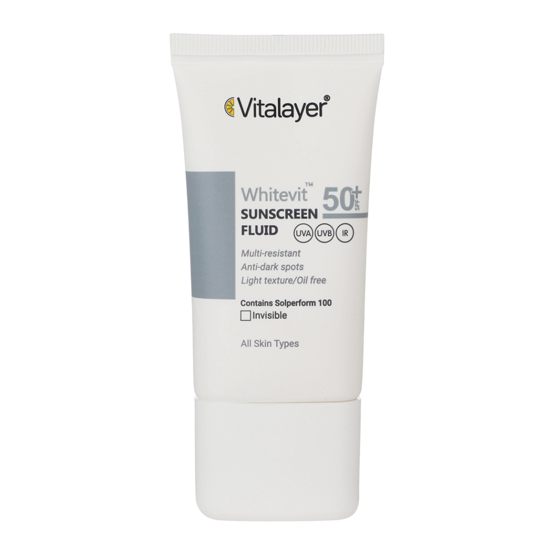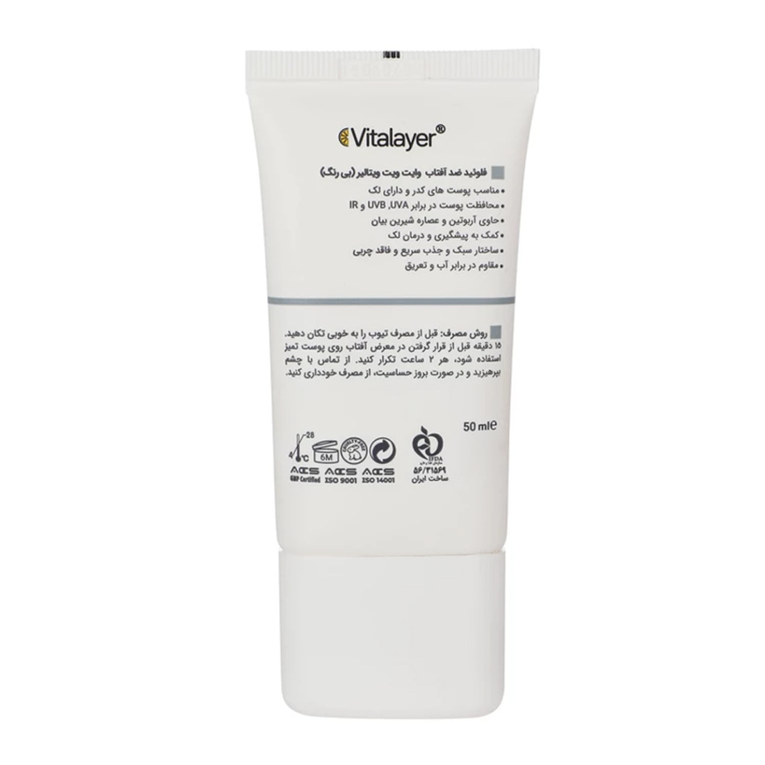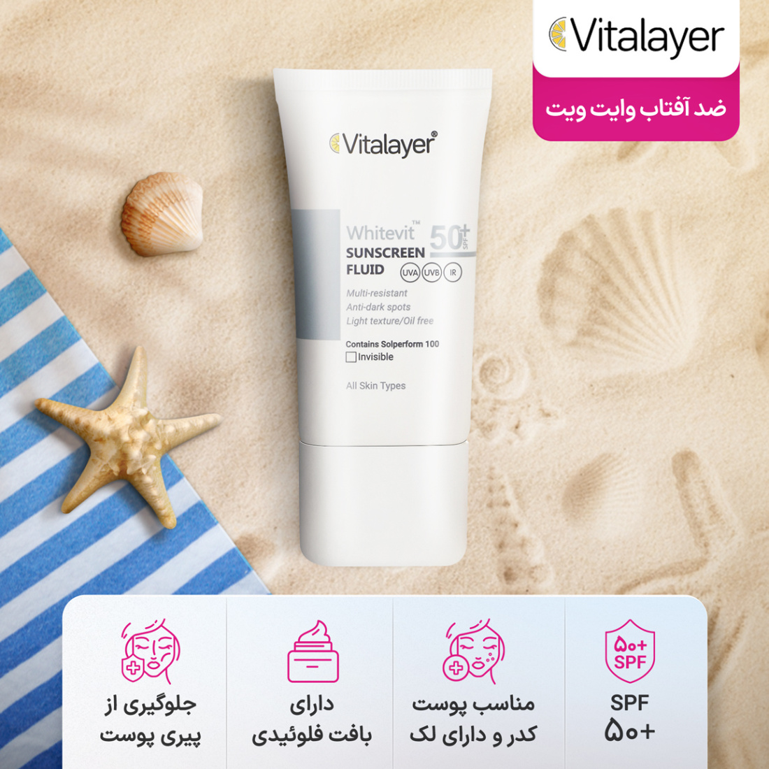 ضد آفتاب وایت ویت ویتالیر بی رنگ مناسب پوست تیره و لک دار حجم 50 میلVitalayer Whitevit Sunscreen Fluid Invisible 50 ml